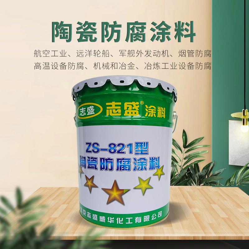 陶瓷防腐涂料采志盛威华特制防腐溶液,耐腐蚀性能好,线膨胀系数高,附着力好,志盛ZS-821隔热陶瓷防腐涂料高温下形成坚硬致密涂层,ZS-821陶瓷防腐涂料涂层受热后可以形成坚硬致密的涂层,硬度高,耐酸碱性能好,防水腐蚀气体。ZS-821陶瓷防腐涂料能长期耐住酸碱液体、气体的腐蚀。ZS-821陶瓷防腐涂料填料全部采用纯无机纳米粉料,涂层在腐蚀环境中可以长期使用,高温下防酸碱气体腐蚀,不易老化变色、涂层硬度可以达到6H,能长时间抗磨损腐蚀,涂层硬度高可以经受住长期粉尘、烟气、粮食、强气流等冲刷等有益性能。
